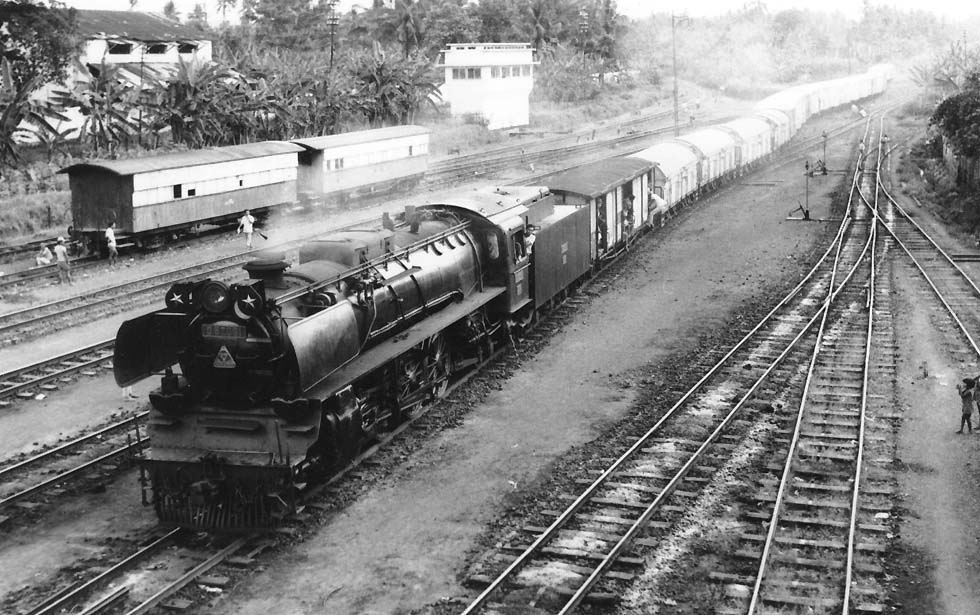 The Japanese conquered Indonesia in 1941. They changed the few standard gauge sections to Cape gauge and they brought the standard gauge engines to Manchuria. They built new lines also in Sumatra, but that island never had a complete network. After civil war Indonesia became independent in 1949. The Dutch steamer services ended in 1958, but in 1966 the blue all-sleeper BIMA Express was built in Eastern Germany for Jakarta - Surabaya services, later including also coaches. During the 70's there was even a sort of boat-train Surabaya - Jogjakarta in connection with the cruise ship "Prinsendam", consisting of a diner from VEB Bautzen and a 1st class car.