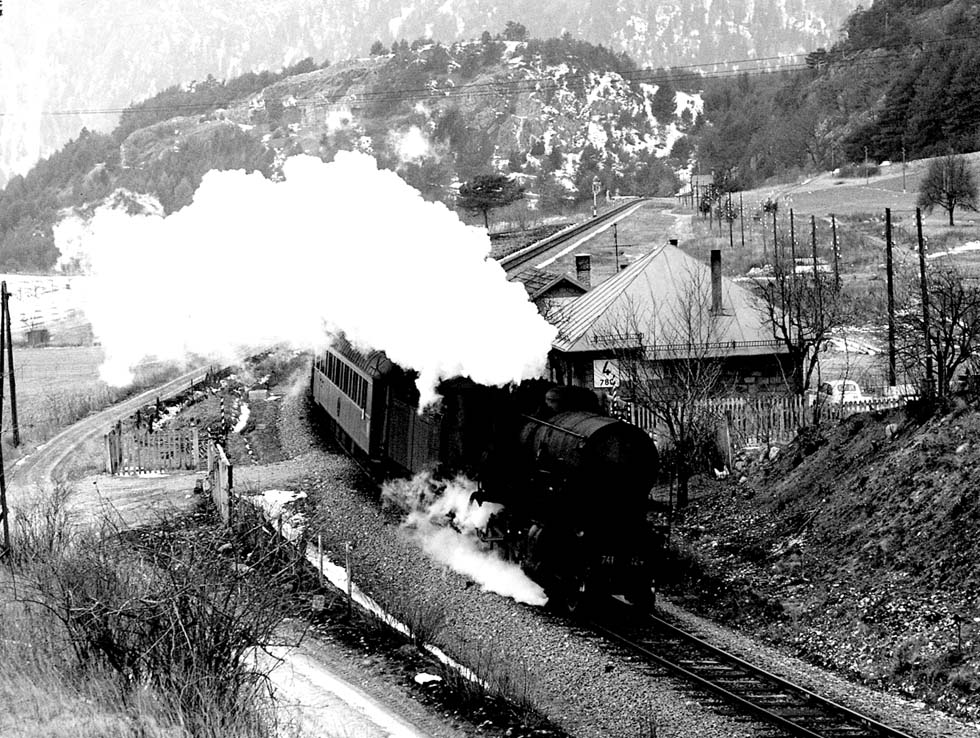 Tauern-Express Athens – Oostende, OeBB class 1010, helped by 1245, near Mallnitz in 1961 (Wilhelm Tausche)
