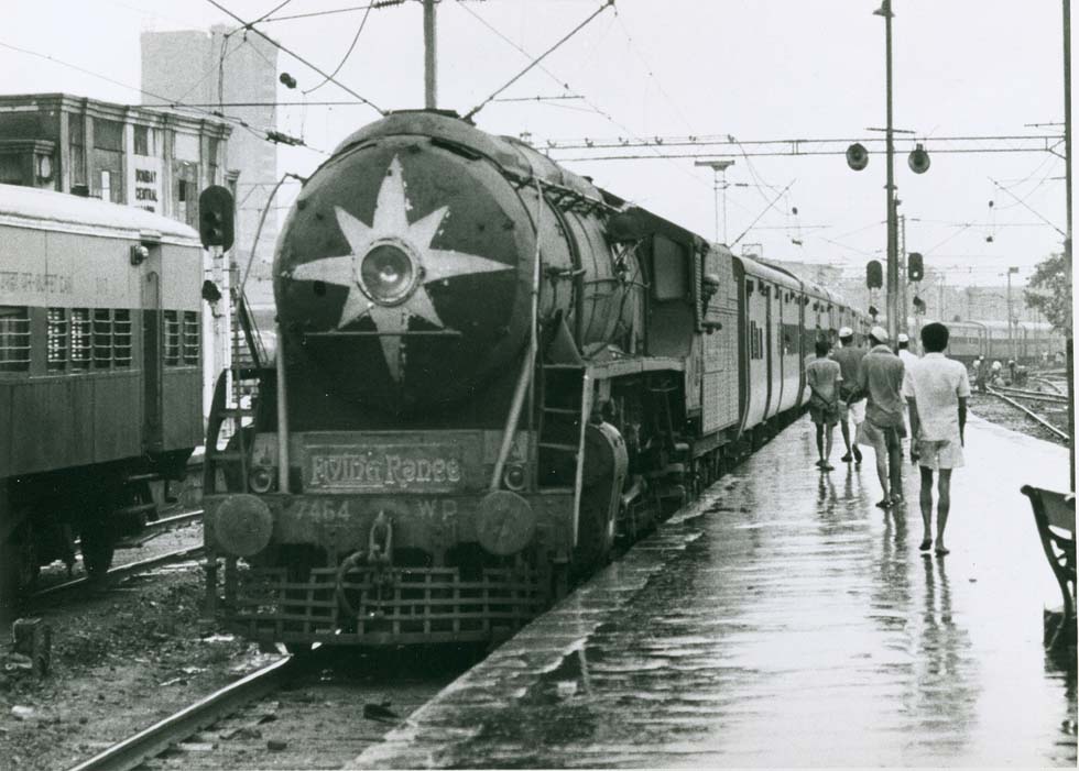 "Flying Ranee" from Surat with WP7654 arriving at Bombay Central in 1975 (WS)