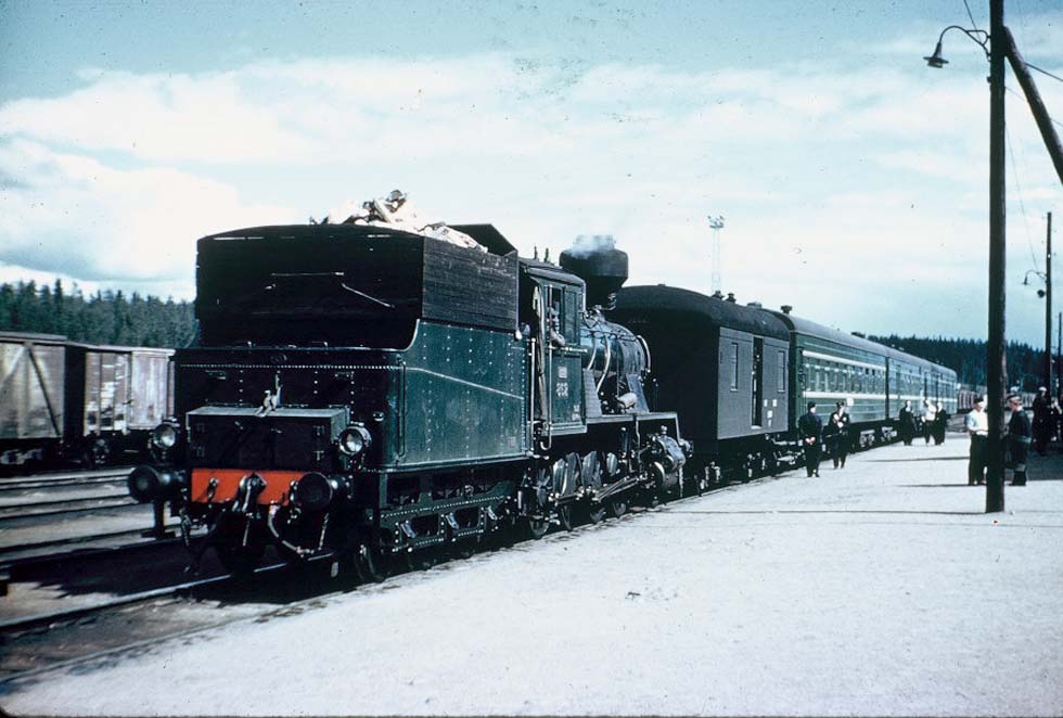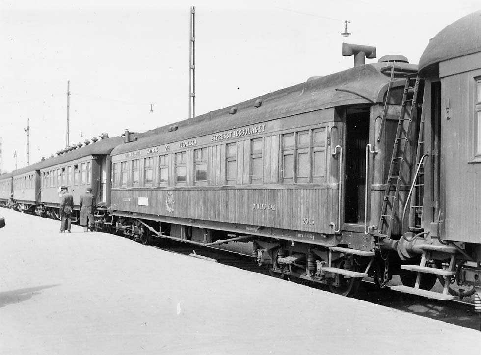 Soviet express, Finnish class Tk-3 no.882, Soviet "soft" sleeper, postal van and van, Hyvinkaa, Finland n the, 50's (coll. Heribert Schroepfer)