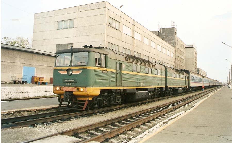 Traction, with 15 changes of locomotives: ChS2 and ChS4T (25kV0, VL60P/K and VL10 (3kV d.c.), diesel TE3 from Ulan-Ude on SZD; MTZ diesel TE2 from Naushki, 2M62M Sukhbaatar - Ulaanbaatar/-Dzamin Uud, TE2 to Erlian; KZD diesel DF4 and from Datong NY7 diesel-hydraulics. Westbound on Qinglongqiao ascent two NY7. In the 21st century new engines appeared in every country, in Mongolia even diesels from USA.