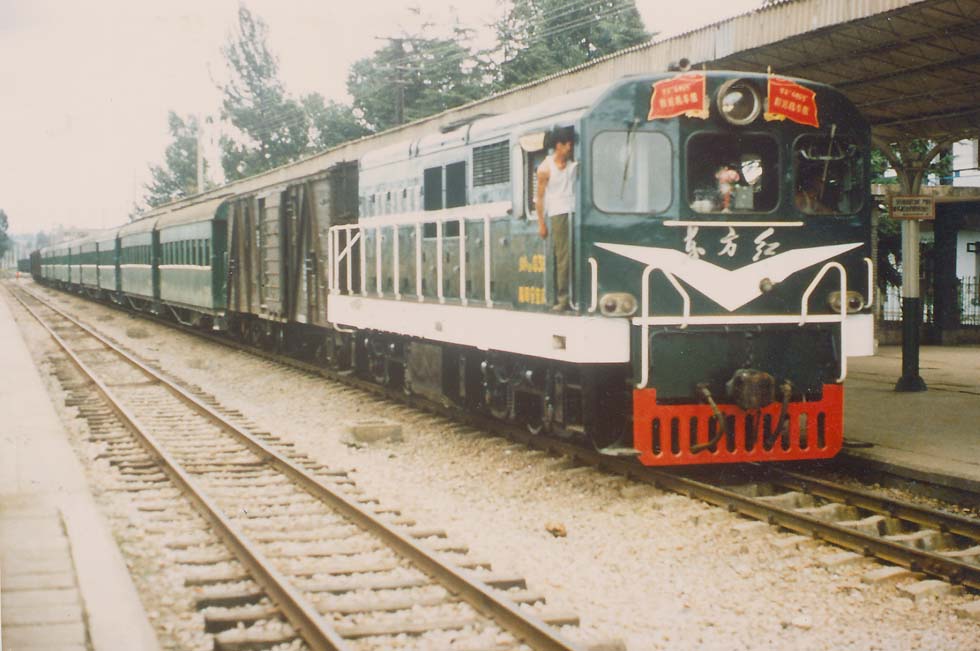 Chinese meter-gauge Yunnan railway, the interrupted second connection with Vietnam, Chinese diesel hydraulic DFH21 at Kunming Northern station, October 1982 (Hans-Herbert Frohn)