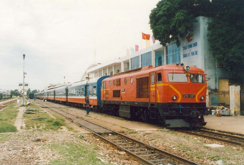 Express S1.Ha Noi - Saigon, diesel engine D11H from Romania with a new MTU motor, at Da Nang, where the train reverses, September 2001 (Heiko Mueller)