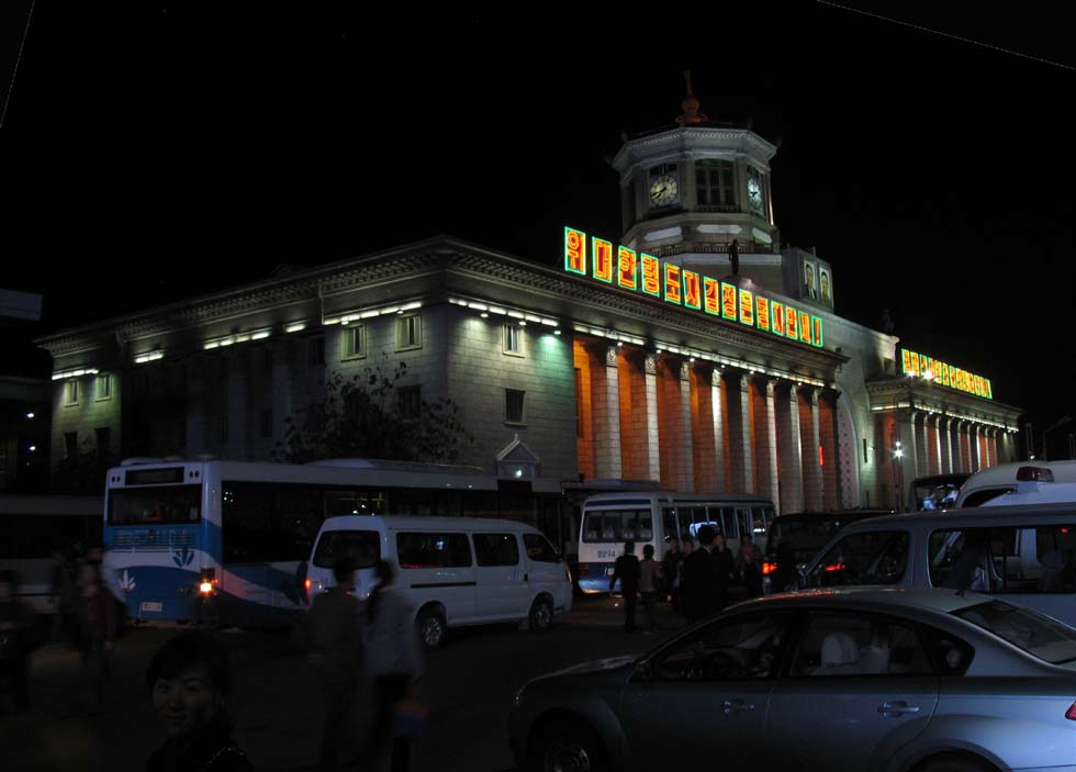 An additional direct service Moscow - Pyongyang avoiding China, via the border stations Hasan and Tumangang, was introduced decades ago by the “Rossiya” Moscow -Vladivostok. Still now the twice-monthly hard sleeper Moscow - Pyongyang is detached at Ussuryisk. The green North Korean car is contrasting with the red/blue ones of the “Rossiya”. Like China, Korea has standard gauge. Since the end of WWII North Korea had no connection with the South. The first train to run from North to South Korea, announced in 2006, started in May 2007 for privileged passengers, but the timetable listed no regular services.