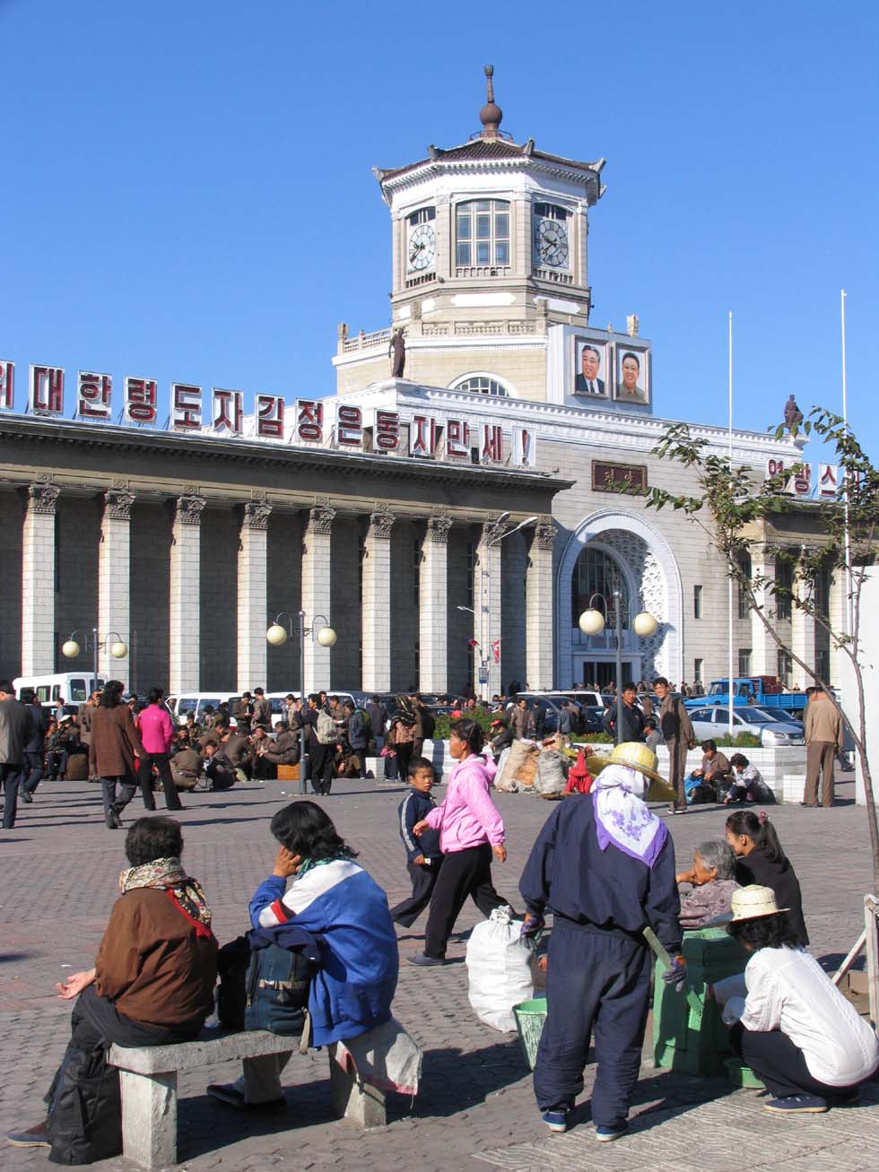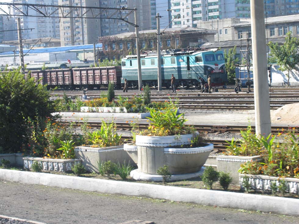 The Soviet’s train Moscow - Manchuria - Beijing from 1954 had always cars for Pyongyang, North Korea, at Shenyang combined with the train Beijing - Tianjin - Pyongyang. Generally there are the two Chinese sleepers Beijing - Pyongyang alternating with two North Korean sleepers. In 2005 the express K27 left Beijing twice weekly with the old green Chinese soft and hard sleepers for Pyongyang and twice weekly with new green air conditioned North Korean sleepers, built in China. The domestic cars in China were now pastel/red colored. A diner runs Beijing - Dandong and Sinuiji - Pyongyang.