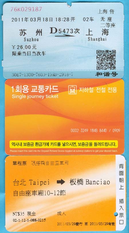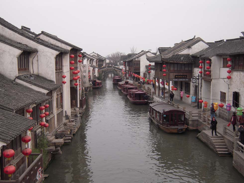 For the railway enthusiast of course the main attraction is the magnetic levitation SMT train connecting the Pudong airport at a speed of 430km/h, developed in Germany, but prevented there by opposition, media (and corruption?) from being installed in the country of its origin. Though Shanghai is jammed with motorcars, most important for suburban traffic is the subway. There you have to buy the ticket at one of the innumerable slot machines, go through the obligatory security check, board the Metro together with the crowd of people (the young ladies are fashionably dressed, Italian-style) and arrive at the Shanghai Railway Station, where you can watch from the nearby bridge the expresses entering and leaving, with electric engines, and every few minutes one of the white high-speed train sets of a network which step-by-step is extended to cover the whole country. Buying a ticket is not easy, the information center sends us to the ticket hall, crammed with thousands of people, at every counter waiting in an immense queue - no, let's try one of the hundred slot machines. With the help of a young Chinese who speaks English fluently, we get a return ticket to the place where we want to go, the city of Suzhou, the "Little Venice", discovered by my dear wife in a travel guide (while the rail fan is studying only the high-speed train types). After passing the luggage control, one of the waiting halls has to be entered and only with a valid ticket the way downstairs to the platform is open.