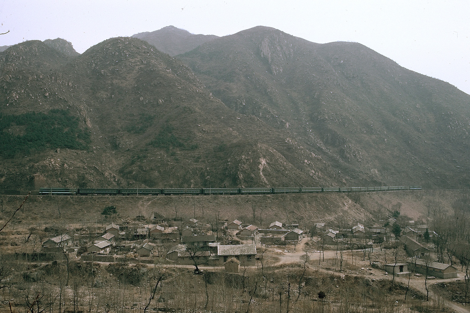 Train 170 Yinchouang - Beijing with two NY7 diesels descending from the Nankou Pass 1988 (WS)
