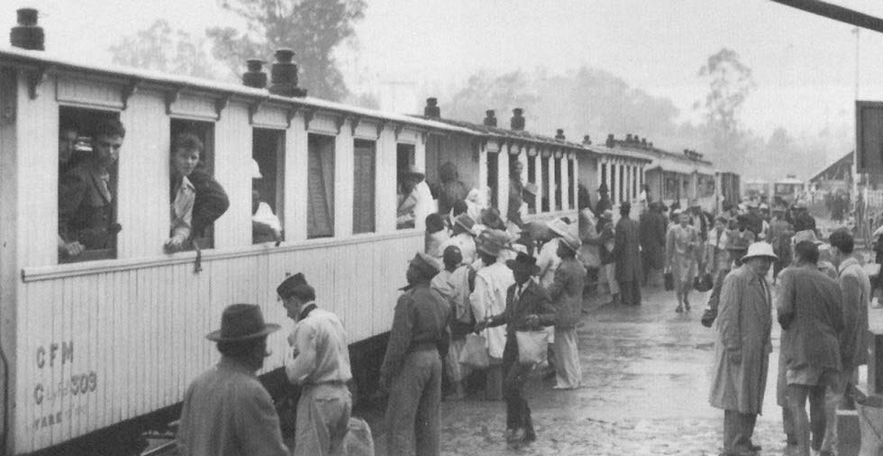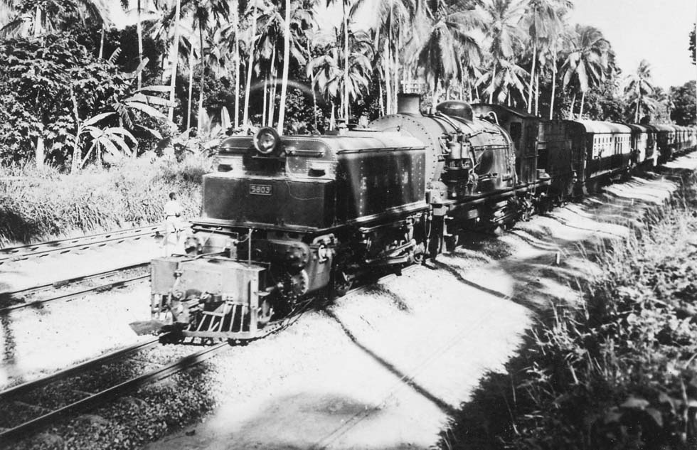 Steam-hauled train Tananarive - Tamatave, connecting with an Ocean liner for France, but no special train, Moromanga 1954 (Charles S. Small)