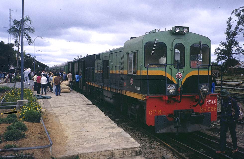 Train Antananarivo – Taomasina, diesel BB228, at Antananarivo, 1990 (Hans Soelch sr.)