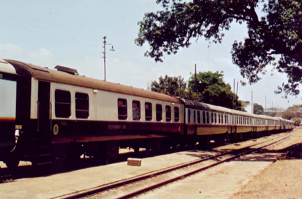 Later Tanganyika Railways, cars maroon/cream, then East African Railways, then Tanzania Railways.