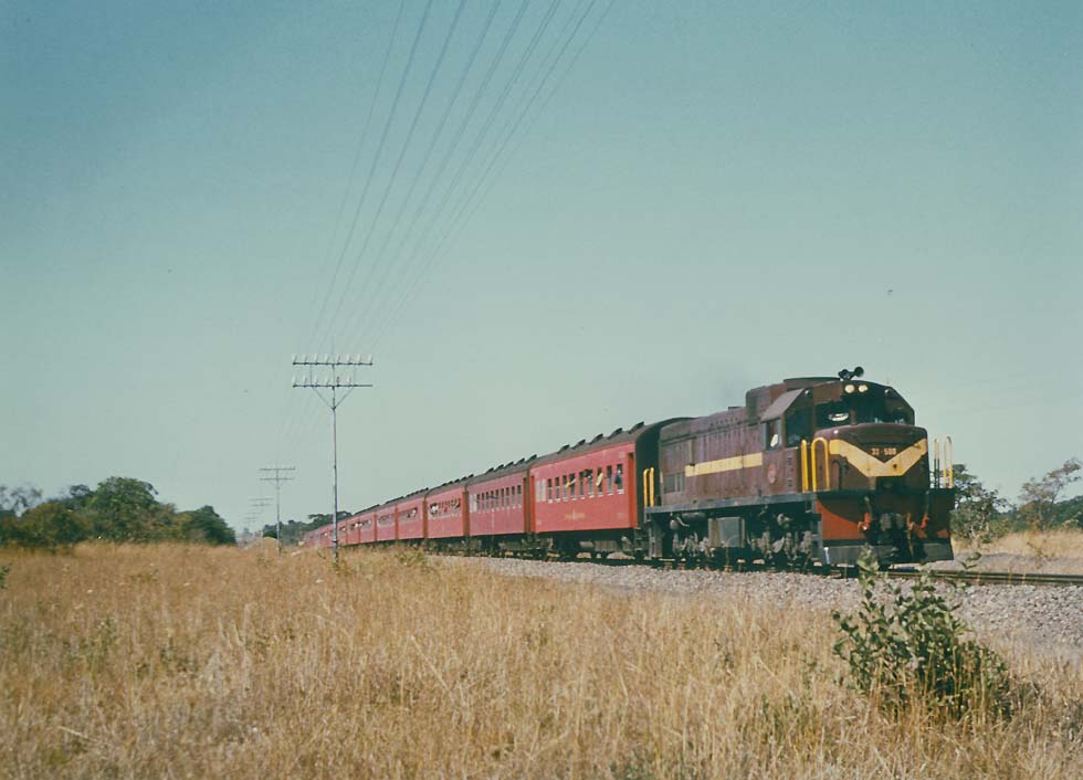 The Portuguese dream was a connection across Africa to Mozambique. That "C.F. Atravez Africa" started at Luanda in Angola, but it remained a local line. In Cecil Rhodes' empire the 2ft gauge Beira Railway was built, in 1898 completed between Umtali and Beira. From 1900 the Cape gauge mail train of the BMR, later RR, ran Salisbury - Beira. From 1935 Beira had its mail train to Nyasaland, now Malawi. "Shooting up the Malawi Mail" became the communists' hobby and in 1976 the railcar Blantyre - Beira was stopped. Passenger train services between Zimbabwe and Mozambique were interrupted, but within Mozambique and Malawi some trains continued running.