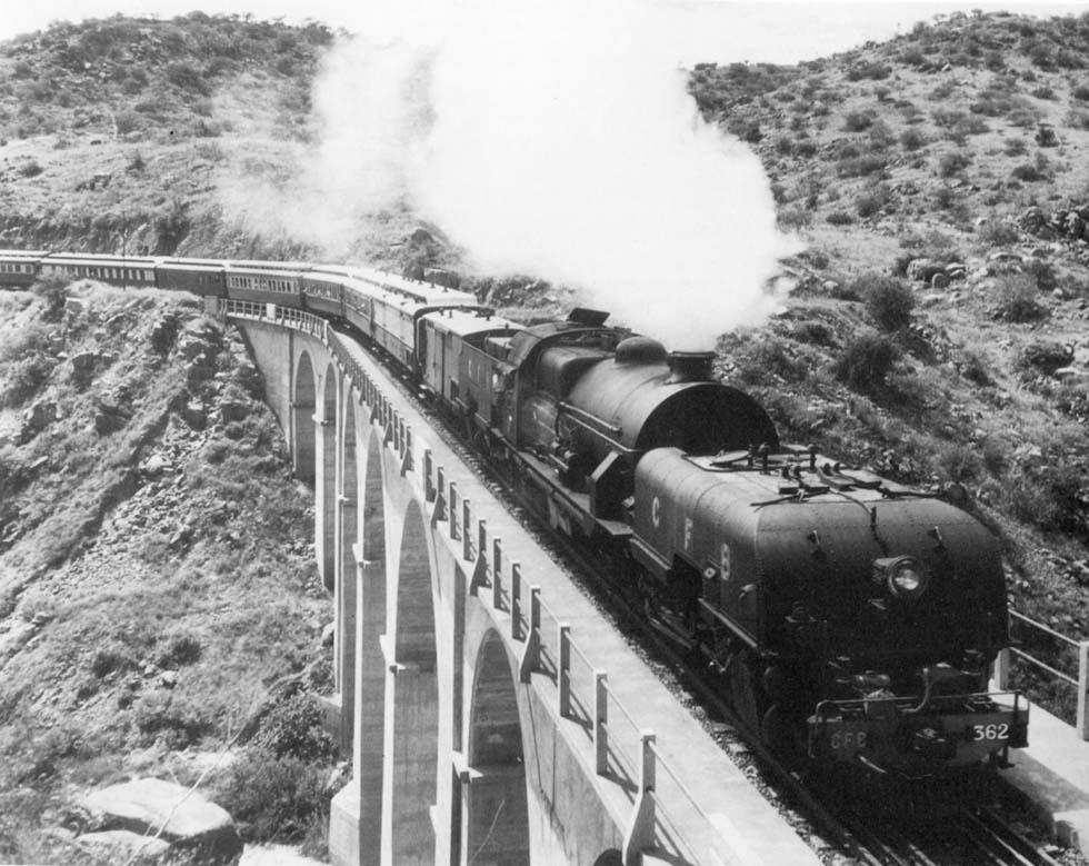 Express of the Benguela Railway, Garratt class 10D no.362, on the old Comandante Machado bridge (coll. CFB)