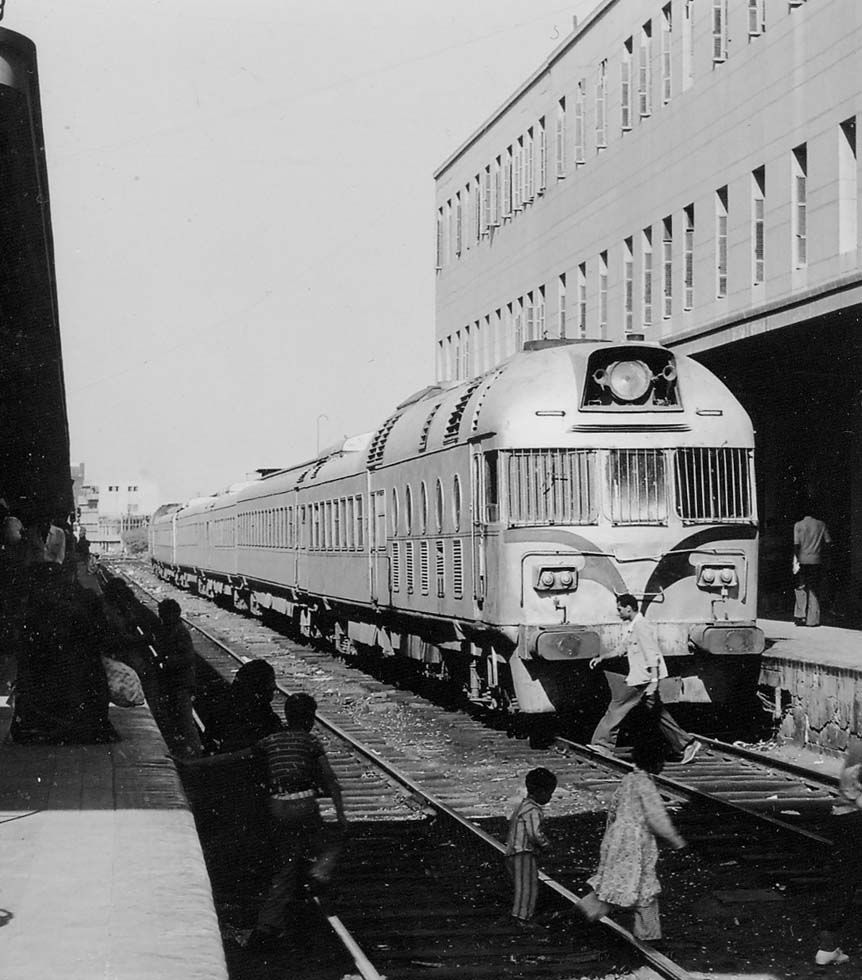 Fuer den Schiffsreisenden aus Europa ist die Hafenstadt laut, verwirrend heiß, ein wenig Neapel, aber staubiger. Einige Eindruecke: eine Fiakerfahrt die Corniche entlang, die so schoen ist wie die Promenade des Anglais in Nizza... Ein Kutscher, der sich verfaehrt, darueber schimpft wie eben ein Kutscher und schließlich, nach gluecklichem Erreichen des Ziels, dem verdutzten Fahrgast einen orientalischen Bruderkuss auf die Wange drueckt... Oder ein Gepaecktraeger, der sich durch nichts abwimmeln laesst, nicht durch absichtliches Nichtverstehen, nicht durch Kopfschuetteln auf die Erkundigung ob man Englisch kann, noch durch "no" auf sein "sprechen Deutsch? Francais?", und der auf die aus Übermut auf seine Frage, was man nun eigentlich spreche, hingeworfene Bemerkung "Ellinika" - fließend griechisch zu plaudern beginnt... Oder der Taxifahrer, der partout eine Taxifahrt nach Cairo anbieten will, die natuerlich dankend abgelehnt wird. Eindruecke dann: der Bahnhof, im Stil der Gruenderzeit erbaut, seine großzuegige Halle mit filigranen Stahlbindern, der Tee im Cafe neben dem Bahnsteig, die droehnenden Diesel, General Motors, aehnliche General Electric, eine neue Henschel in Silber, stumm eine andere Henschel im Look der fruehen Nachkriegszeit. "Unser" Zug nach Cairo wartet mit Vierachsern in den Standardfarben grau mit hellgrau an einem der hohen Bahnsteige. Ein Schaffner verstaut das Gepaeck auf den Ablagen in einem Großraumwaggon zweiter Klasse (der einzige "Air conditioned"-Wagen war schon ausgebucht) und - haelt die Hand fuer ein Trinkgeld auf.