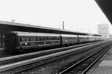 Hispania-Express Hamburg - Port Bou, series 103 and coaches of DB, departure Hamburg, June 1974
