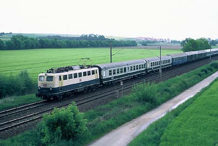 Pilgrims' special Passau - Lourdes, DB class 110, two French hospital cars and cars rented from Slovakia (WS)