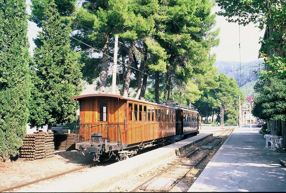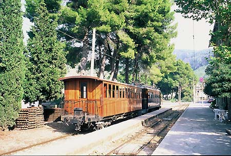 Ferrocarril de Soller, AAB1 and trailer, Bunyola, Mallorca, November 1998 (WS)