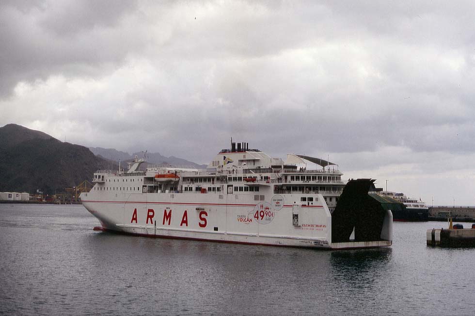 In the same year 1966, Fred. Olsen & Co. introduced the car ferry "Black Watch" (9,499 gt) and sister "Black Prince" on a London - Canaries route (during summer employed by Det Bergenske), in 1970 followed by the "Blenheim" (10,420 gt, then "Discovery I" for Miami - Bahamas cruises). Naviera Aznar introduced in 1974/ 75 the 10,851-ton car ferry "Monte Toledo" and sister "Monte Granada" on a route from Southampton and even Amsterdam to Santander, closed down however in 1977 and the ships were sold to Libya. Compania Trasmediterranea introduced car ferries on the routes Barcelona- and Cadiz - Canaries. The metropolis of Las Palmas with its important harbour is served still nowadays by the car ferries from Cadiz of Acciona Trasmediterranea. A main provider of Canaries inter-island services is Naviera Armas, founded in 1941, later connecting also Morocco. Local services are provided also by Ferry Gomera and other enterprises.