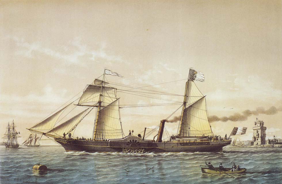 Paddle steamer "Ville de Paris", a painting by Louis le Breton, described as a regular line from France to Spain and Portugal (via Wikimedia)