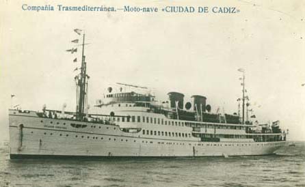 Motor ship "Ciudad de Cadiz" of Trasmediterranea (old card, coll. WS)