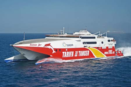 In 2000 the fastest line Tarifa - Tangiers was started with FRS catamarans. In the new century Algericas became connected with Tangiers in 1 hour by hi-speeds of Acciona Trasmediterranea, Balaeria, Euroferries, IRS Iberia and Nautas Ferry. FRS Iberia crossed the Strait in 35 minutes with the Austal catamaran "Tanger Jet II" and the Incat-built "Tarifa Jet". After Trasmediterranea had introduced the hi-speeds "Alcantara" and "Almudaina" of the Spanish Mestral 96 type, their sister "Albayzin" changed from New Zealand to the Ceuta route, operated by the Uruguayan company Buquebus. Then Buquebus Espana and Euroferries extended hi-speed operations to the Spanish enclave on the Moroccan coast, which is fenced against illegal immigrants.