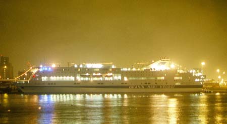 The Grimaldi Group Naples was founded in 1945, according to its Web site. Grimaldi targeted around 1970 with the advanced newbuild "Freccia Rossa" the way towards modern ro-pax vessels. The "Eurostar Valencia" (2003/25,984 gt) opened a Civitavecchia - Toulon service in cooperation with LD, sporting a GRIMALDI-LOUS DREYFUS label, known as GLD Lines, a joint venture. Sister "Eurostar Salerno", like the later ro-pax vessels labeled GRIMALDI FERRIES, the dark-blue funnel decorated with the letter 'G', started the Civitavecchia - Tunis service in 2005. Step by step the Grimaldi Group, concentrating on long routes, extended operations. In 2008 Grimaldi Lines opened a new dimension with the "Cruise Roma" (54,310 gt, 1,200 pax, 3,040 lanem), introduced on the Civitavecchia - Barcelona route, then joined by sister "Cruise Barcelona". The route was operated before with the "Eurostar Roma" (ex "Superfast I") and "Eurostar Barcelona" (ex "Prometheus" in Minoan charter), intended to become "Eurostar Tunis". A class of smaller ro-pax ships with 2,700 lanem followed from 2008 on. For the widespread activities of Emanuele Grimaldi see also the chapters Baltic Sea, Adriatic and Aegean.