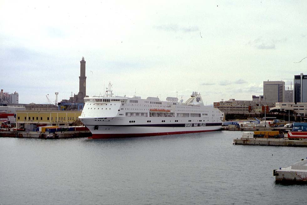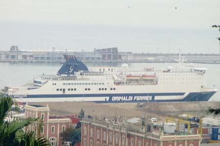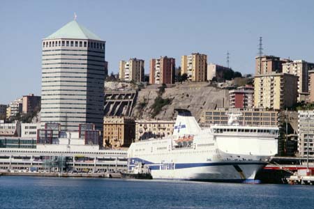 The label GRIMALDI LINES appeared also on the new white car ferry "Majestic" (1993/32,746 gt) and her consorts "Splendid" and "Fantastic", registered for Grandi Navi Veloci, Palermo, founded in 1991 by Aldo Grimaldi. They offered to more than 1,200 passengers a comfort hitherto unknown on the routes from Genoa. The "Fantastic" opened in 1998 the Genoa - Barcelona route, joined by the "Majestic". With the somewhat similar "Excellent" (1998/39,739 gt) and sister "Excelsior" the Civitavecchia (Rome) - Tunis service was started in 2005. The larger cruise ferries "La Superba" and sister "La Suprema" (49,270 gt, 2,800 lanem) of 2002-03 went into service on the Sardinia and Sicily routes. A Genoa - Barcelona - Tangiers service was added. Newbuilds of 26,000 tons followed from 2006.