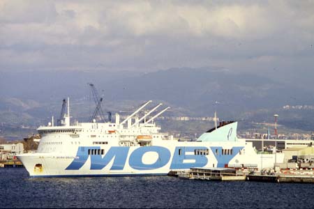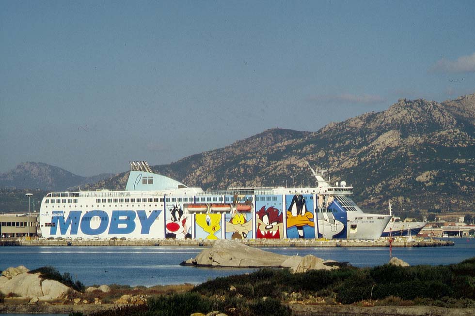 This island, where the Kingdom of Italy had its roots, was connected before World War I mainly by the Navigazione dello Stato and the Societa 'Sicilia'. Later the steamers of Tirrenia provided the important services. In the early age of car ferries Tirrenia continued to link the island with a route network reaching as far as Genoa and Sicily. In 1961 the state railways FS had inaugurated a freight train ferry service Civitavecchia - Golfo Aranci, offering also motorcar transport and cabins for passengers. The 4,300-ton "Tyrsus" was followed by the "Hermanea" and "Gennargentu" and ferries transferred from Sicily, but in the first years of the 21st century the service disappeared from the timetable. At that time of course Grandi Navi Veloci, Grimaldi and other companies, altogether roughly a dozen, linked half a dozen Sardinian island ports with the mainland. Navarma and Tirrenia connected also Corsica. Tirrenia has created a sensation with the spectacular MDV hi-speeds. Lloyd Sardegna was acquired by Moby Lines. Their colourful ships are an eyecatcher beneath the rocky mountains of the Costa Smeralda. In 1991 the "Moby Prince" had collided with a tanker and 141 people died. Close to Olbia the "Moby Magic" ran aground in 2003, then was laid-up, finally being scrapped. In 2004 the showpiece has become the new "Moby Wonder" class of 36,000 gt with a three-level panoramic lounge. Also Corsica Ferries & Sardinia Ferries connect Italy with Corsica (their Greek subsidiary Kallisti Ferries was only a short-term adventure) and in 2010 SNAV joined this market, too.