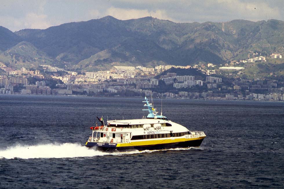 The island of Sicily was linked before WWI mainly by the Adria Line, by Navigazione dello Stato and by foreign companies. The Strait of Messina on the way to Sicily is traditionally served by train ferries of Italian state railways FS - see the relevant chapter. ShipPax listed e.g. in 2006 ten vessels conveying also trucks under the label Bluvia. On the route Reggio di Calabria - Messina, FS introduced passenger-only catamarans, too. Also Ustica hydrofoils, Aliscafi SNAV, merged Caronte & Tourist, Tirrenia, TTT Lines, a subsidiary of TT-Line, and other ferries serve Sicily. Constructing of a gigantic road and railway bridge connecting the island became aimed under the Berlusconi government, opposed by environmentalists and a "ferry mafia", as a Sicilian businessman expressed it. Of course it's no true Mafia, but among the opponents of the railway bridge reportedly were - the railways.