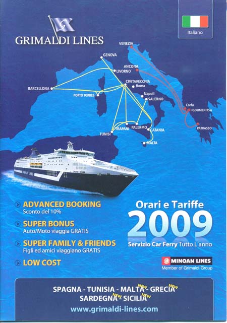 Still in the 50s the timetable listed, apart from other routes, the Laferla Line with a service Syracuse - Malta. Sea Malta closed down, but Grandi Navi Veloci, Grimaldi, Maresi with car ferries and a Virtu catamaran continued to connect the capital Valletta. And there is the little car ferry of the Gozo Channel Co. , the only connection to Gozo Island, which must be maintained even if other services would disappear. Indeed, though Malta has become a member of the EU, in some local "Sir Winston" pub you may feel closer to London than to Italy.