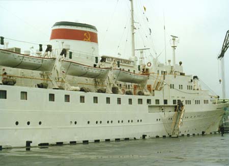 The green volcanic Kurile Islands, Soviet outposts close to Japan, were connected during the Cold War by the new "Turkmeniya", "M. Uritzkiy" and "Priamurye", 5,261-ton motor-ships of the series built from 1963 in East Germany. The longest route, served by the motor-ship "Turkmeniya", was Vladivostok - Providenye on the Bering Sea. A voyage to the river Lena did not appear in the timetable and now the harbour Tiksi, close to the river mouth, is devastated. The Soviets' megalomaniac plan to build a canal from the Pacific to the Lena was never realized. A road, the Kolyma track, was built from the Pacific to world's coldest region by hundreds of thousands of Stalin's prisoners. They had been carried by ship to the port of Magadan and almost all of them died in the icy region.