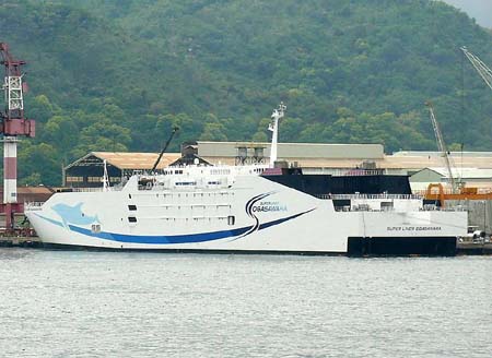 Nowadays, Shinkansen high-speed railways are connecting Honshu with Hokkaido and Kyushu, gigantic road bridges have been built and air transport developed. Nevertheless, ShipPax listed more than fifty companies providing domestic car ferry services and a dozen among them also operating high-speed services. A high-speed air-cushion craft, the "Kamome", was tried in 1971 on the Uko N.R. route, but this concept was taken no further. The "Ocean Arrow" is a car-carrying 1,678-ton SSTH of 1998, developed by Professor Hideaki Miyata, listed for Kumamoto Ferries on Kyushu. The first InCat catamaran surpassing the 10,000-ton barrier was the 112m-type "Natchan Rera", introduced in 2007 by Higashi Nihon Ferry, followed by the "Natchan World", competing between Honshu and Hokkaido with various other boats. Between Atami and the island port Oshima, Cook's timetable listed e.g. in 2008 a 'Semi submerged Catamaran' of Tokai Kisen. The "Super Liner Ogasawara" of 13,923gt, built in 2005 at Mitsui Zosen for a speed of 42.8 knots, was not introduced by Ogasawara Kaiun due to high fuel consumption on account of gas-turbine engines (according to 'Die grossen Passagier-Schiffe der Welt').