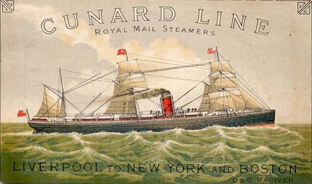 In April 1843 the "Hibernia" of more than 1,400 tons went on her maiden voyage Liverpool - Boston. On 1st January 1848 Cunard opened with sister "Cambria" a direct route between Liverpool and New York at a traveling time of 13 days and 16 hours for the 3,073 nautical miles. Thanks to successful operation, the government support was raised so that 4 larger steamers of more than 1,800 tons could join the fleet: "America", "Niagara", "Europa" and "Canada". Their engines exerted 2,000 h.p. and enabled them to cut the Atlantic crossing to less than 10 days. At the mid of the century Cunard disposed upon a fleet of 13 steamers to provide twice-a-week departures. In 1856 the company received the "Persia" as their first iron-built vessel, attaining 13.88 knots as a record breaker. Thanks to her sturdy construction, she could continue her voyage with a damaged bow after knocking on an iceberg. In 1859 her sister "Scotia" was launched as the company's last paddle-wheeler. Cunard's first screw-driven ship, the 2,539-ton "China", had her maiden voyage Liverpool - New York in 1862, followed by other screw steamers.