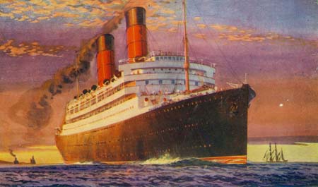 In 1920 Southampton, used before already by competitor White Star, became the prominent port of departure for Cunard passengers. The "Carmania" and Caronia" sailed in 1922 from Hamburg, but next year both were converted to oil-burning, running Liverpool - Quebec. In 1926 these ships, already twenty years old, opened the London - New York route. To keep up with the increased postwar traffic and to provide raised amenities also for the lower classes, Cunard took at work six smaller ships of approximately 14,000 tons on the Canadian route and five others of about 20,000 tons on the Liverpool - New York route in the early 1930s: the "Scynthia", "Samaria", "Laconia" (II), "Franconia" (II) and "Carinthia". In spite of their somehow old-fashioned appearance due to their thin single funnel, they provided appropriate comfort. The "Laconia", placed in service in 1921, lengthened the list of catastrophes through enemy action, when she was torpedoed by the German U 156 on 12 September 1942 on her way from South Africa to England with 2,732 persons on board, 1,800 of which Italian prisoners of war. The German commander did all he could to their rescue calling by radio for help.