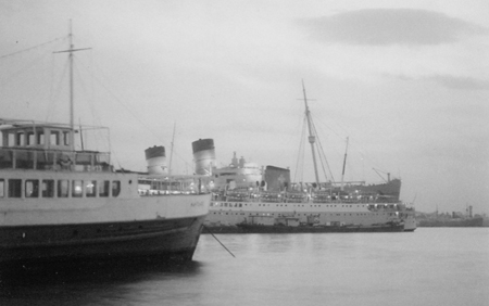 "Berengaria" (ex "Imperator") and "Empress of Australia", Southampton c.1938 (old card, coll. WS)