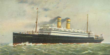 After interruption by WWI the transatlantic services of the Holland America Line were resumed. "It's good to be on a well-run ship", was the credo for that line, quoted by Peter C. Kohler in his report about HAL (published by Ships Monthly, Jan. 2008). Economy and good service were the principles of the line instead of taking part in a mad race for the Blue Riband. The "Volendam" (15,434 gt) of 1922 and her twin-funnelled consorts were built for a speed of 13 knots. The last of world's large North Atlantic liners put in service before WWII was the "Niew Amsterdam", completed at Rotterdam in 1938. That twin-screw turbine steamer of 36,287 gt with HAL's characteristic black hull, white superstructure and the green/white bands on the buff funnels, built for a speed of 21 knots, represented a decent modern elegance.