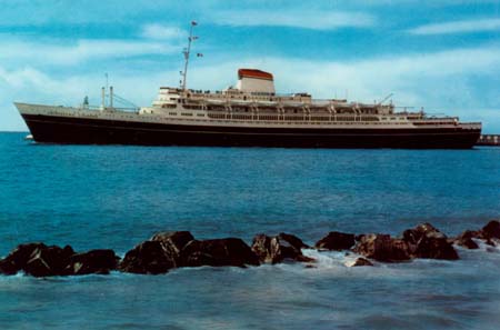 In 1955 entered the "Cristoforo Colombo" (29,191 tons) as partner of the "Andrea Doria" the line. Her accommodation, designed by the architect Gustavo Pulitzer, presented a more conservative style. From 1965 she operated from Trieste and changed - now with white painted hull - in 1973 on to the South America route. In 1977 the ship was acquired by the CVC Siderurgica del Orinoco of Venezuela to be used as a hotel ship and in 1980 she went to Taiwan to be broken up.