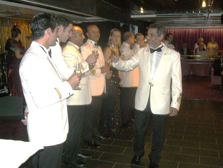 Aboard the “MSC Rhapsody” mainly on the 3rd day life is quite different. It’s the day of the Captain’s Cocktail Party, gala dressing is recommended. Captain Raffaele Russo from Italy makes shake-hands, then his staff is presented, all officers being Italian, only the cruise director is a blond lady from Finland. Finally the Captain opens the dance party. Dinner is formal and after, at half past eight, the show has its furious start “a la francaise”. The most quiet place on that evening is the top lounge. It’s a casino, but only on one of the tables gambling is going on, and the gamblers obviously are the casino staff members. For the last guests the musician is playing decently a Benny Goodman tune.