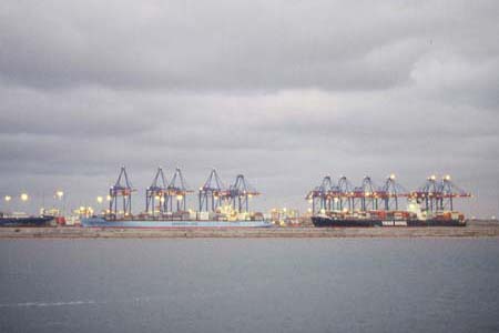 The land in the west, once Lake Mensaleh, has been cultivated since decades. In the late afternoon a passenger train with a German-type diesel locomotive overtakes the “MSC Rhapsody”. It’s an express Cairo – Ismailia – Port Said. Parallel to the railway there is a motorway, densely frequented by cars, trucks and buses. The sky has become cloudy and evening is falling. The canal is divided up once again. Lights are spreading. A new container terminal, port facilities and, far distant in the west, minarets indicate that we are passing the region of Port Said. The pilot leaves, his boat blasts a farewell and then, after a canal passage of altogether 192 kilometers, covered in 12 hours at a fee of 150,000 euro, the “MSC Rhapsody” enters the Mediterranean. Goodbye Africa…