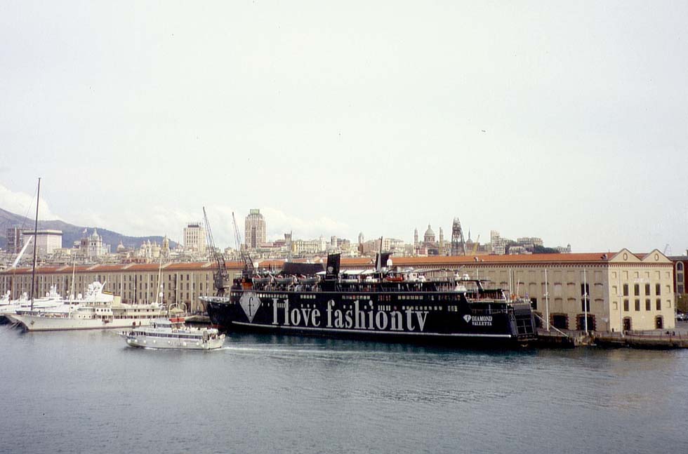 Slowly the “MSC Rhapsody” is approaching the harbour, passing modern and old buildings, the cathedral and the palaces somewhere in the background. The ship enters the bay with the nice name Bacino delle Grazie, where the midsize cruise ship “Costa Romantica” is lying (though Costa Cruises’ terminal is Savona) and the “Tariq Ibn Ziyad” of Algerie Ferries is moored. Sailing round the Arena del Mare, a strange-looking black-painted vessel comes into view, the “F. Diamond” (identified as the 40 years old “Tor Hollandia”, then “Ariadne” of Minoan, “Ouranos” of Fragline, later an event ship). On the opposite side of the Bacino Porto Vecchio, the old harbour bay, close to the Terminal Traghetti, three modern car ferries are moored: the “Splendid” and the “Fantastic” of Grandi Navi Veloci, the latter employed on the Barcelona route, and the “Janas” of Tirrenia, serving Sardinia. At 2 pm the “MSC Rhapsody” arrives at the old Stazione Marittima, once the ocean liners’ terminal of Genoa.