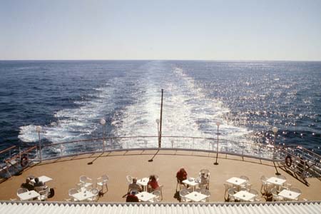 Next day the officers have changed their white uniforms against dark. Snowfall is reported from Zurich, but here in the Eastern Mediterranean region the sun is shining and the sea is blue. Not before dinner the first rain is falling. Are we going to meet the European winter now? No! We’ve an ‘Italian’ night, tenor Domingo Stasi is singing Bajazzo and then the cruise hostesses from Napoli are dancing Tarantella with the passengers (fortunately enough there had been a lesson before).