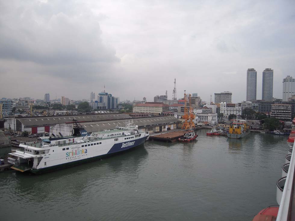 Aus dem Schlaf weckt morgens das Rumoren der Thruster. Das Schiff hat am Pier im Hafen von Colombo festgemacht, der Hauptstadt von Sri Lanka, dem einstigen Ceylon. Frühstück auf dem Oberdeck, nebenan ist der Container-Hafen und gegenüber, am anderen Pier, liegt „The Wonder of Asia“ – und es ist tatsächlich wie ein Wunder: Dieser „Jetliner“ von Sri Lanka nahm den regulären Liniendienst nach Ramaswaram in Indien auf, so versichert zumindest die Hafenpolizei, nachdem die ursprüngliche Fähr-Route von der nördlicheren Hafenstadt Talaimannar nach Ramaswaram wegen des blutigen Bürgerkriegs der Tamilen für Jahrzehnte unterbrochen war. Das Schiff ist ein Hi-Speed, sieht aus wie ein altes englisches und in der Tat ist es später im Internet als der „Jetliner“ der P&O Irish Sea zu identifizieren. Ein Fussmarsch führt an dem Gebäude der Port Authority und anderen ehrwürdigen Kolonialbauten vorüber, eins davon das Oriental Hotel, und weiter geht’s mit einem Tuck-Tuck zu einem Tempel, einem Hindu-Heiligtum, dann zum Buddha-Tempel und zum Bahnhof Colombo Fort Railway Station. Eine Diesellok W3 hat einen Regionalzug reinrangiert, Menschen stürmen ihn, Frauen in wunderschönen Saris, Kinder, und trotz des Trubels sind alle freundlich, auch die Polizisten. Der Trubel geht weiter im Strassenverkehr, mehr ein Geschicklichkeitssport. Zurück auf dem Schiff – Ausruhen, nichts als Ausruhen, und das Bewusstsein, zum erstenmal in Colombo gewesen zu sein… Abends, nach dem Ablegen, bleiben die Lichter des neuen Container-Terminals in der Dunkelheit zurück. „Guat’s Nächtle“ wünschen die Nachbarn, diesmal Schweizer.