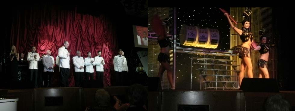 Beim Abendessen gibt es interessante Gespräche mit den Tischnachbarn. Einer konnte 1959 mit einem östlichen Kreuzfahrtschiff von Rumänien nach Ägypten reisen und er flog auch nach Castros Cuba, aber als seine Frau nach 1963, dem Jahr des Mauerbaus, in der DDR nach einer Cuba-Reise fragte, wurde sie verhört, beinahe verhaftet. Ein anderer fuhr von Warnemünde nach Cuba mit der „Arkona“, der einstigen ersten „Astor“ von 1981 – aber natürlich nach der Wende. Showtime dann im Theater Colosseum: American Doodle, ein Betrunkener kommt zu einem Zuschauereingang herein, torkelt, fällt – und führt Saltos auf, vorwärts, rückwärts, welch ein Clown, welch eine Show…