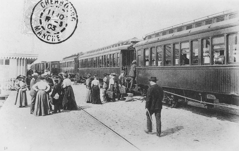 Very early the Compagnie Generale Transatlantique, known as the French Line, had emigrants' specials Basle - Le Havre. The only de-Luxe expresses connecting with Ocean steamers on the European continent were the French "Trains Transatlantiques" from Paris to Cherbourg and Le Havre. A highlight was the French Line's white Train de Luxe from 1889. The Wagons-Lits company CIWL continued the service with varnished teak saloons. From 1931 until WWII the Transatlantiques were equipped with green/turquoise colored "voitures-salons" of ETAT railways with superb CIWL service. Another sensation on that line were the 3-unit Bugatti railcar sets. From 1944 the Allied military trains occupied the tracks. When the Transatlantique had its last run in 1974, it was a simple SNCF train.