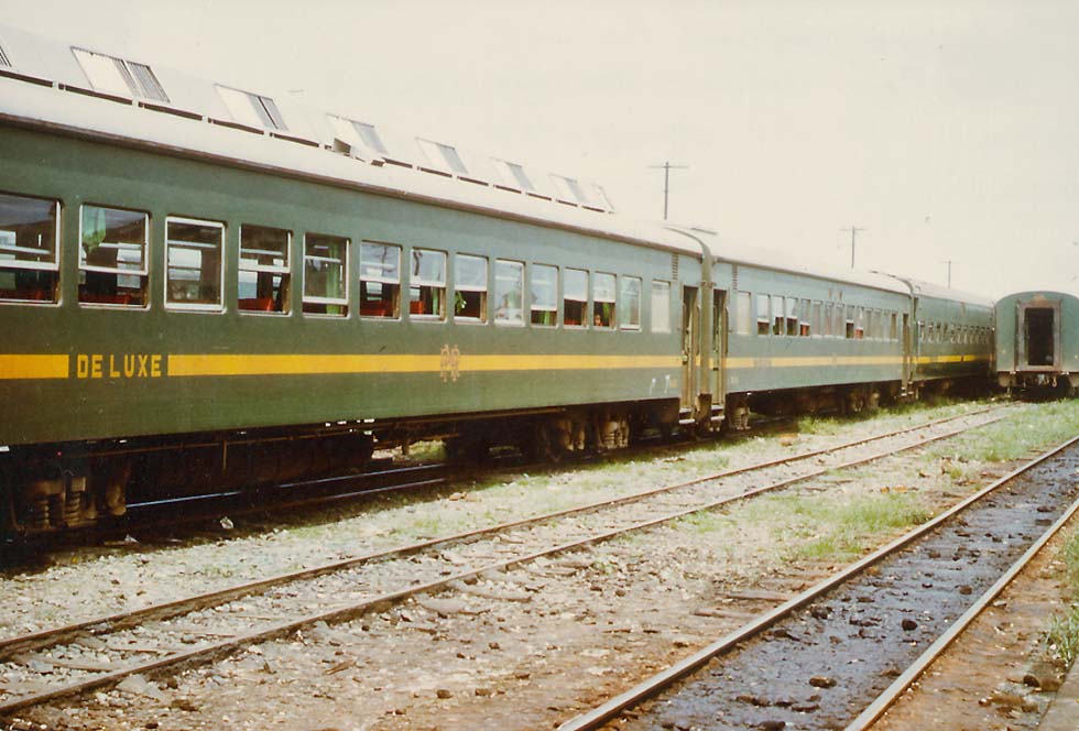 "De Luxe" and other coaches of Philippine National Railways at Manila, October 1977 (William Pearce)