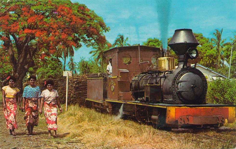 Sugar train on Fiji islands (postcard sent by Dr. Fritz Stoeckl)