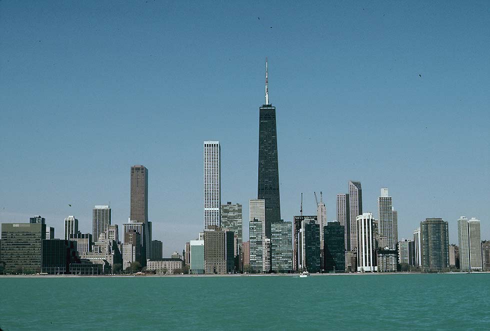Mittags lange Reihen von Gueterwagen und die Hochoefen von Hammond. Dann ueber einem Gewirr von Gleisen in der Ferne faszinierend ein schwarzer Turm mit weißen Spitzen: der Sears Tower von Chicago, das hoechste Haus Amerikas. In Rueckwaertsfahrt wird der Zug in die finstere Union Station geschoben.