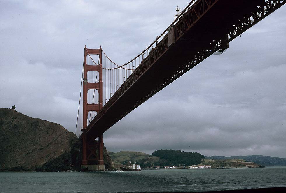 Über den Wiesen ragen die Silhouetten von Schiffen auf, die "eingemottete" Flotte in der Suisun Bay. Dann Martinez, glitzernd die San Pablo Bay, die San Francisco Bay, der Pazifik. Man koennte ins Philosophieren kommen ueber Gottes schoene Welt. Oakland, Endstation. Umsteigen in den Amtrak-Bus ueber die Bay Bridge nach San Francisco.