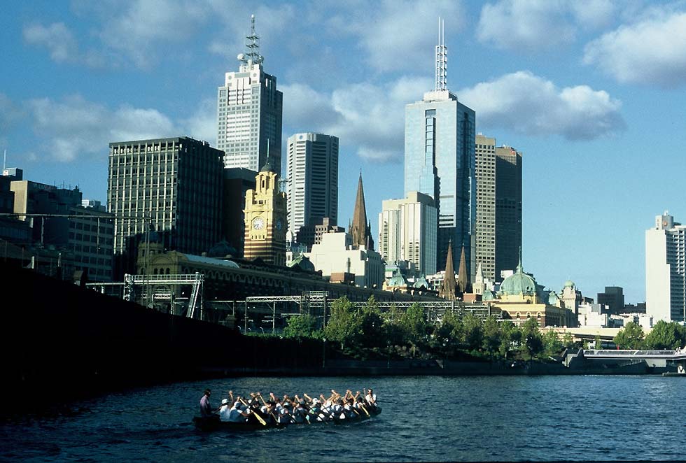 Vom Bahnhof Port Melbourne aus rattert, immer noch der ersten Bahntrasse folgend, eine altmodische Straßenbahn an Einfamilienhaeusern und Laeutwerken der Straßenkreuzungen vorueber auf die Wolkenkratzer von Melbourne zu. Als der Wagen den Yarra River ueberquert, ist die "Polly Woodside" zu sehen, ein Kap Hoorn-Segler, Erinnerung an die Zeit, als die Segelschiffe bis in die Stadt gefahren sind. Auch ein Teil der alten Eisenbahnbruecke ist noch da, ueber welche die "boattrains" in den turmbewehrten Bahnhof Flinders Street eingelaufen sind.