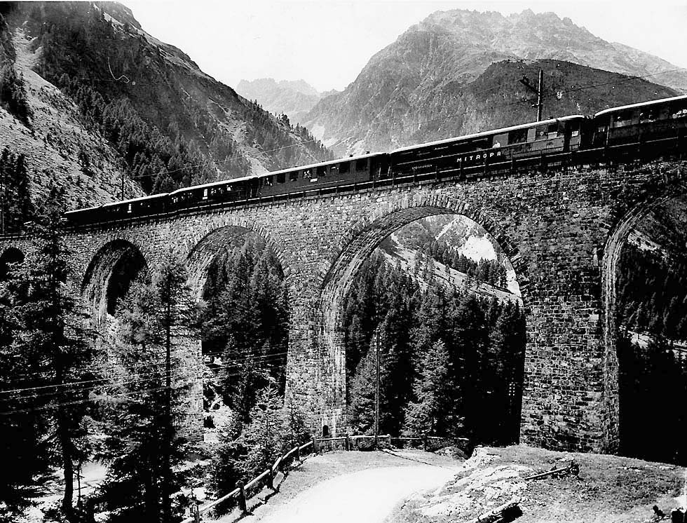 Engadin-Express, Rhaetische Bahn meter gauge with a Mitropa diner, connecting with the Arlberg-Orient-Express (RhB)
