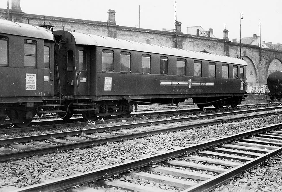 In 1945 initially there had been SNCF, possibly FS, then British and CIWL cars, from 1953 NS, OeBB and DSG cars. The last return journey with the special car of the commander of BTA was in 1955 (literature: Hurst/Elliot, Show me the Way to go home).